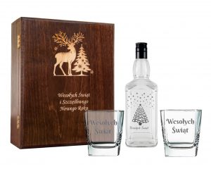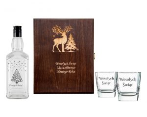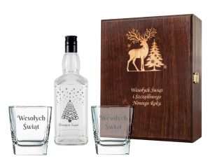 Grawerowana skrzynka z butelką + 2 szklanki - prezent świąteczny